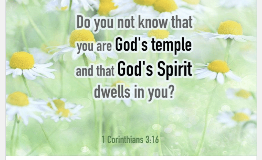 If you are tempted to get down on yourself, remember that you are God’s temple; what a blessing and responsibility!π