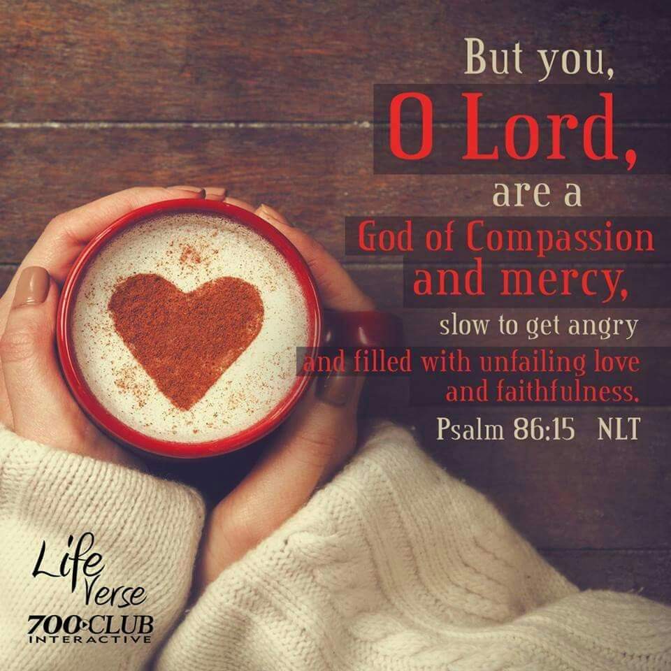 But you, O Lord, are a God of compassion and mercy, slow to get angry and filled with unfailing love and faithfulness.